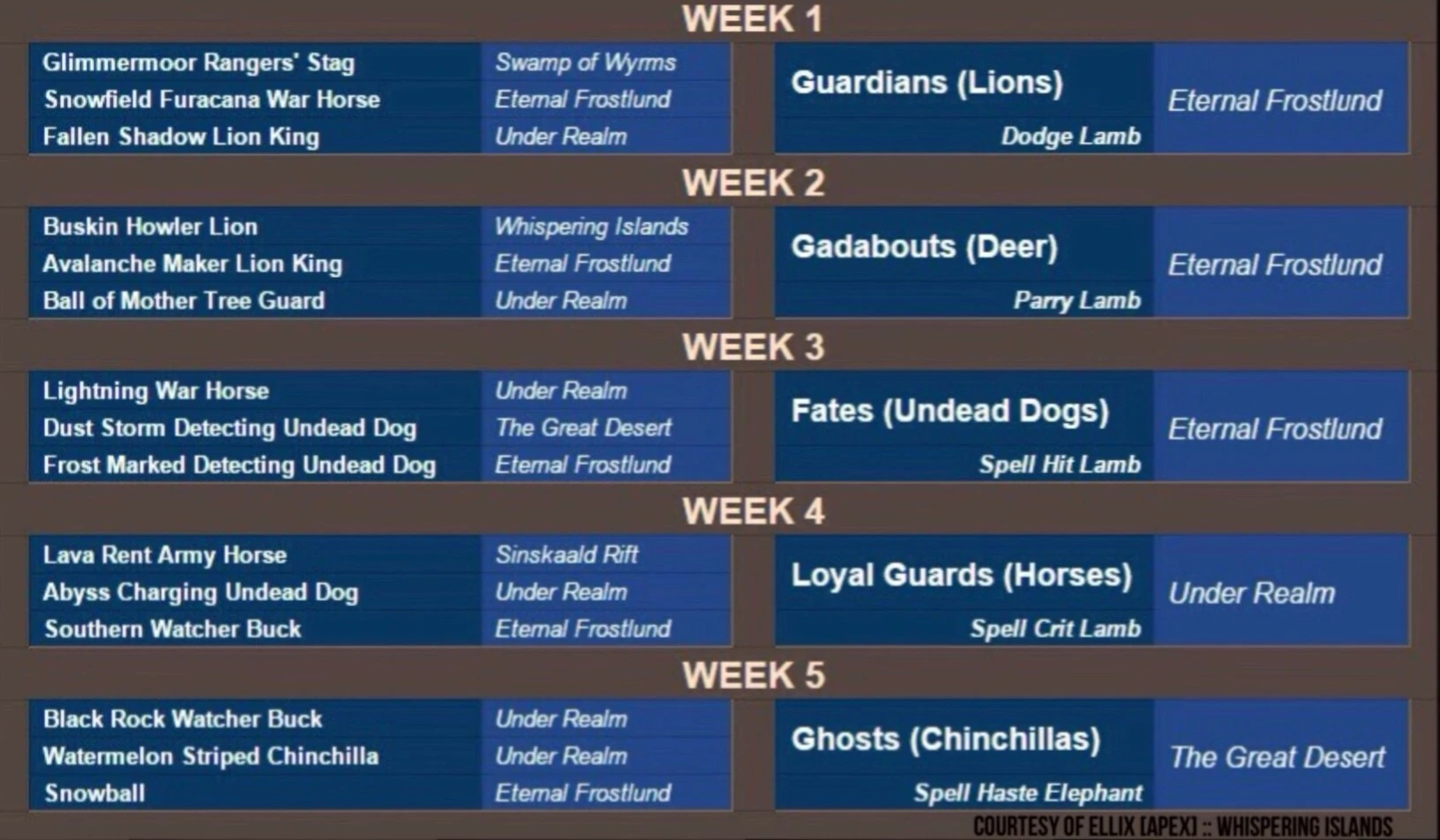 Use this Mount Week chart to determine when certain Epic Mounts will spawn.